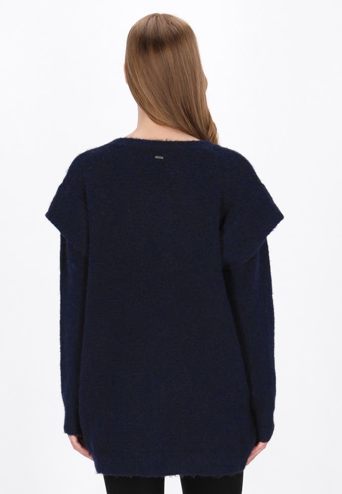 A versatile cardigan from the Vintage Collection, combining timeless style with everyday comfort. Loose cut and lowered shoulder line provide freedom of movement and casual character. The classic round neckline and long sleeves emphasize the simple but stylish form. It is buttoned and made of soft, knitted fabric with a smooth pattern. Perfect for layering - comfortable, casual, yet stylishly retro.