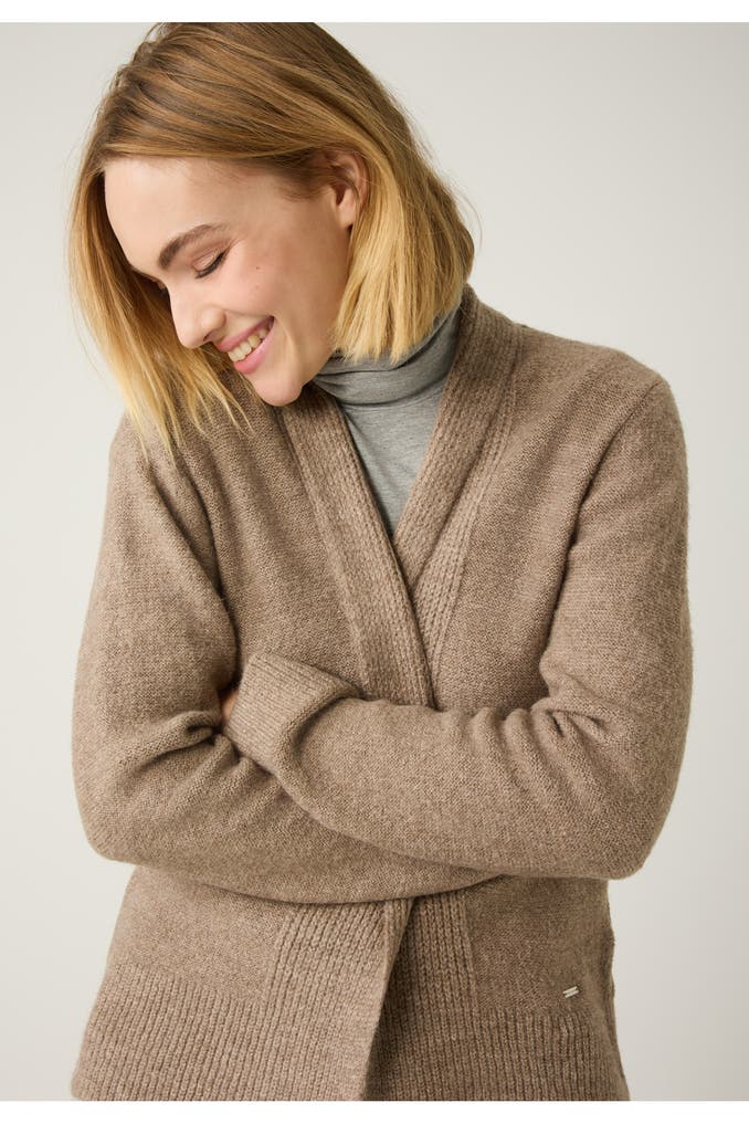 Der flauschig-weiche Cardigan von MORE & MORE mit offener Front und breiten Rippenabschlüssen ist ein toller Allrounder, der gleichermaßen gut zu Hosen, Röcken und Kleidern getragen werden kann.