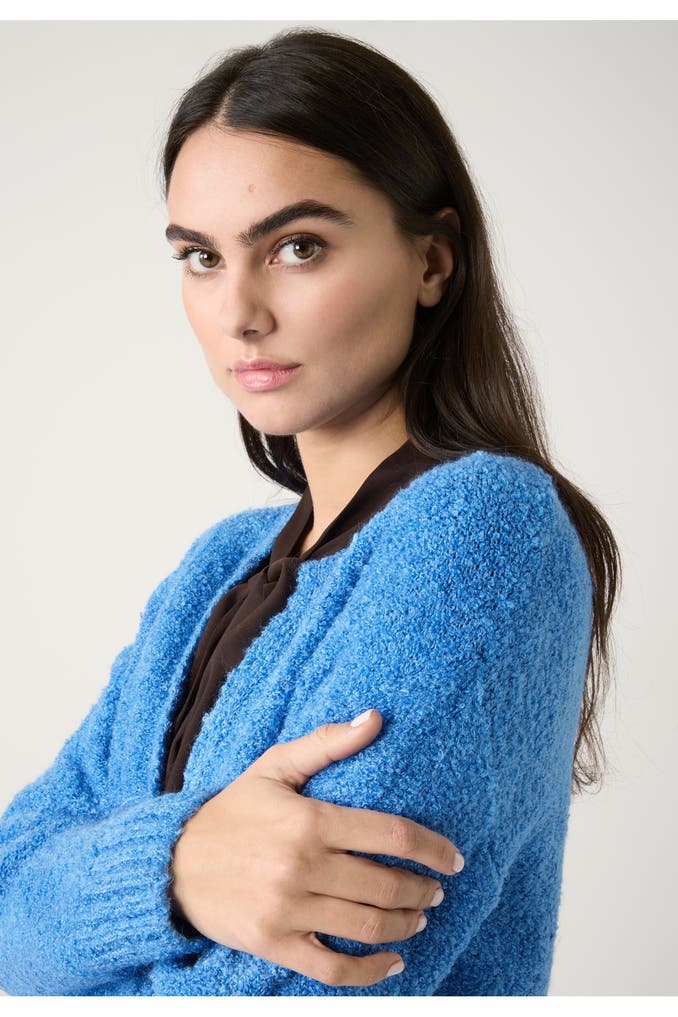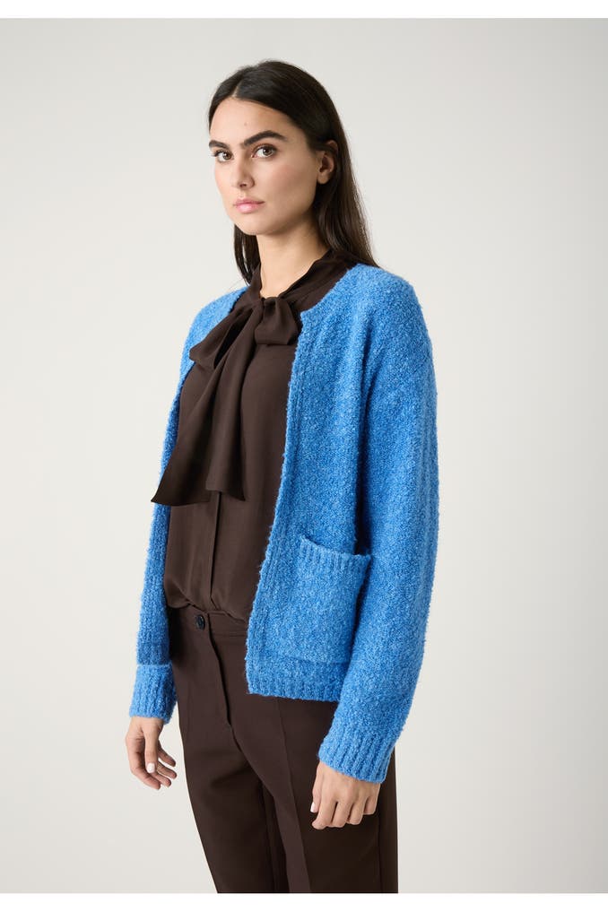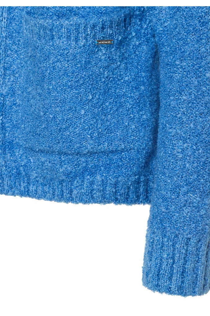 Die flauschige Bouclé-Strickjacke von MORE & MORE mit offener Front und aufgesetzten Taschen ist ein unverzichtbares Essential für die kalte Jahreszeit. Sie kann gleichermaßen gut zu Hosen, Röcken und Kleidern gestylt werden und sorgt für einen kuschelig-warmen Tragekomfort.