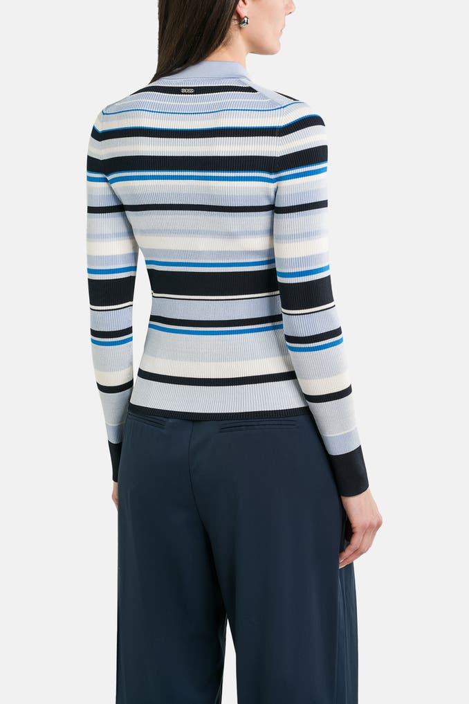 BOSSStrickpullover 'Famite' hellblau gestreift