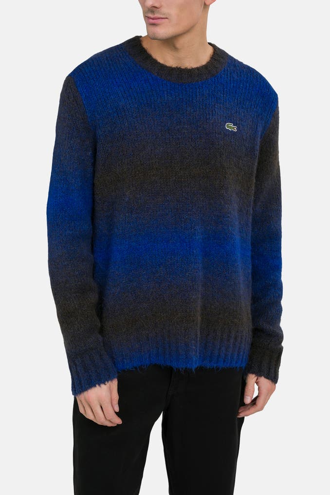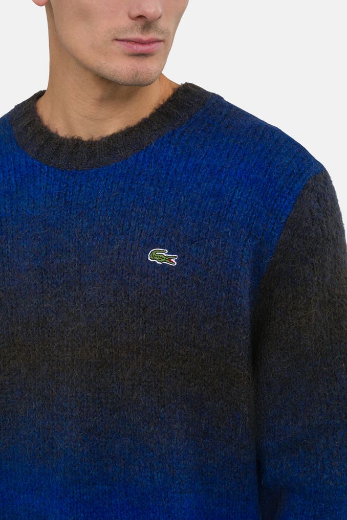 Entdecken Sie den zweifarbigen Strickpullover von LACOSTE in Dunkelbraun und Blau! Der grob gestrickte Pullover aus einer hochwertigen Alpaka-Mischung besticht durch seinen zeitlosen Rundhalsausschnitt und den geraden Schnitt. Ideal für entspannte Freizeit-Looks und dank des wärmenden Materials perfekt für die kühleren Tage.