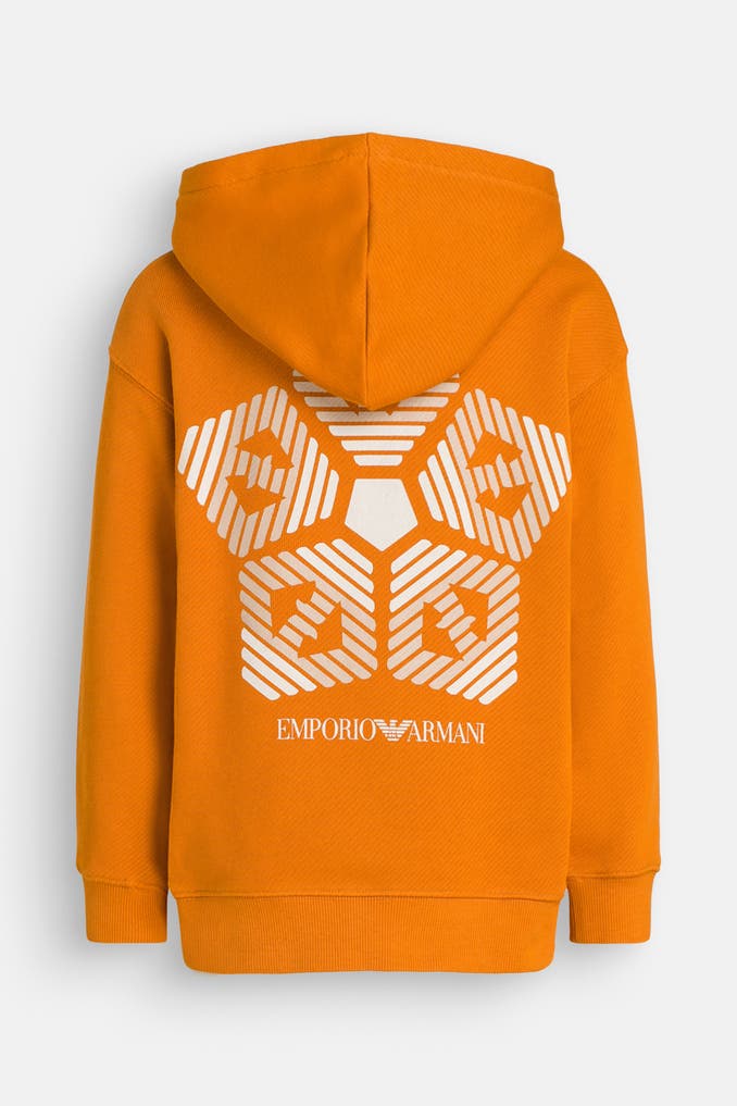 Kennen Sie schon die Sweatjacke 'Felpa' in Orange von EMPORIO ARMANI? Dieses Modell überzeugt nicht nur mit einem coolen Print, sondern auch mit einer angenehmen Sweat-Qualität.