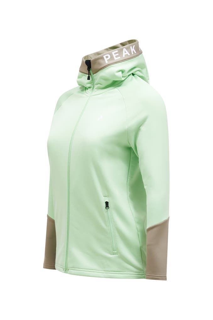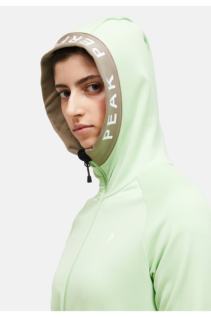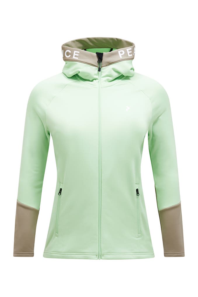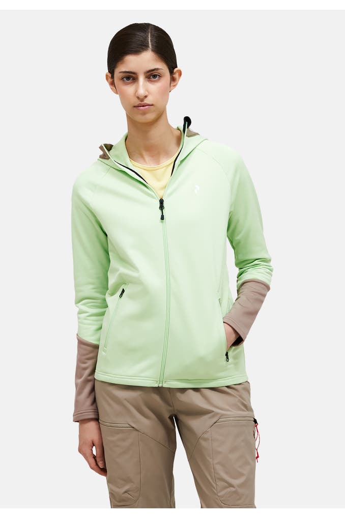 Eine Jacke für viele Fälle: Diese weiche Midlayer-Jacke aus elastischem Material begleitet dich auf deinen Outdoor-Abenteuern. Der schnelltrocknende Stoff wirkt feuchtigkeitsregulierend, damit du selbst bei schweißtreibenden Aktivitäten warm und trocken bleibst. Die hochgeschlossene Kapuze vereint Style und Funktionalität.