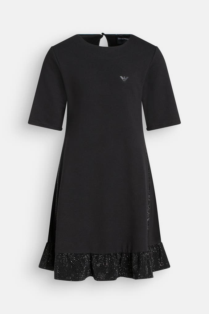 Setzen Sie ein Fashion-Statement mit dem Sweatkleid 'Vestito' in Schwarz von Emporio Armani. Hergestellt aus einem angenehmen Baumwoll-Mix, garantiert dieses Kleid Stil und Bequemlichkeit zugleich.