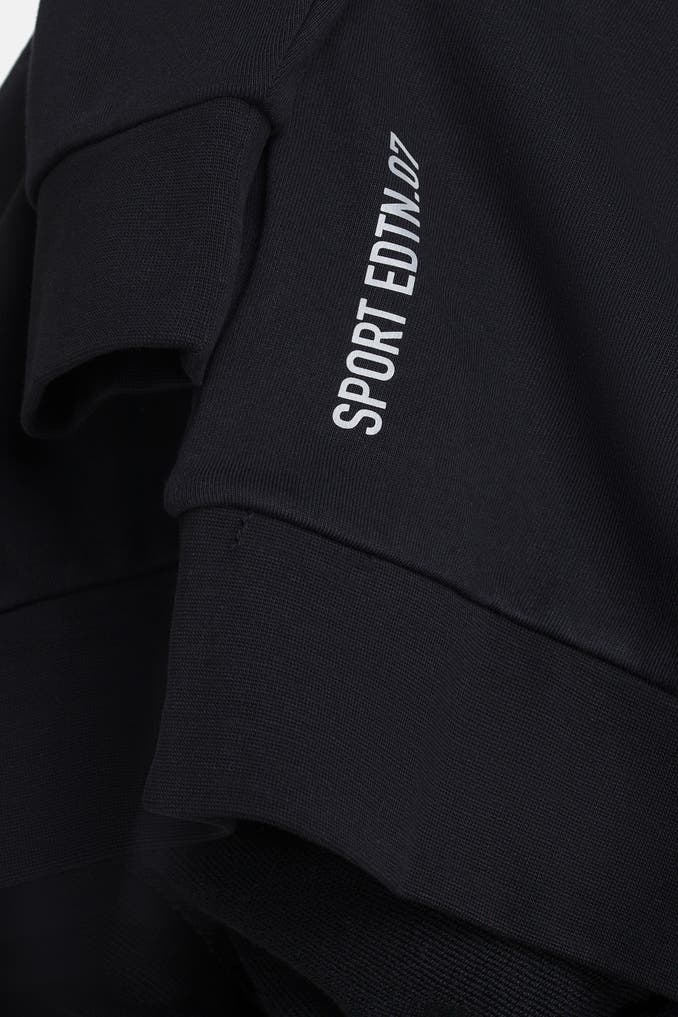 Hüllen Sie sich in zeitlose Eleganz mit diesem schwarzen Sweatshirt von DSQUARED2 im geraden Schnitt. Der Rundhalsausschnitt und das angenehme Baumwoll-Material machen dieses Uni-Sweatshirt zu einem Must-Have für stilbewusste Jungen.