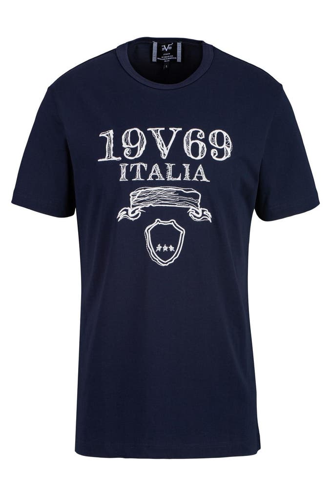 Das 19v69 ITALIA T-Shirt *MAURO SHATTERED* kombiniert zeitlosen Stil mit einem markanten Logoprint. Der weiche Baumwollstoff sorgt für hohen Tragekomfort, während der klassische Rundhalsausschnitt den Look abrundet – ideal für Freizeit und Alltag.