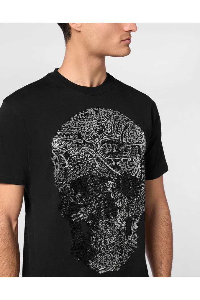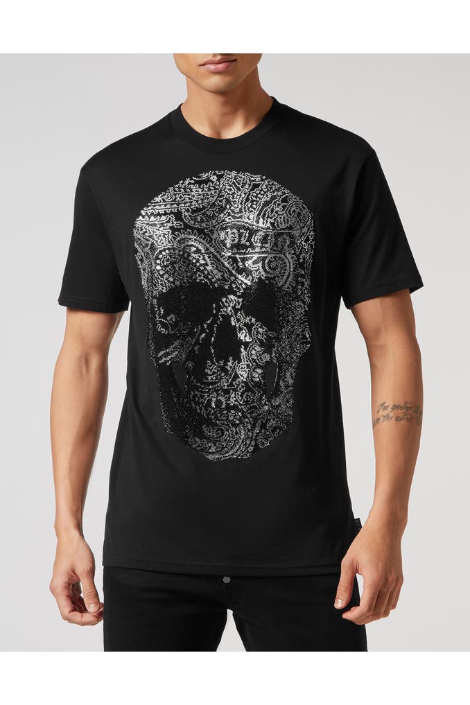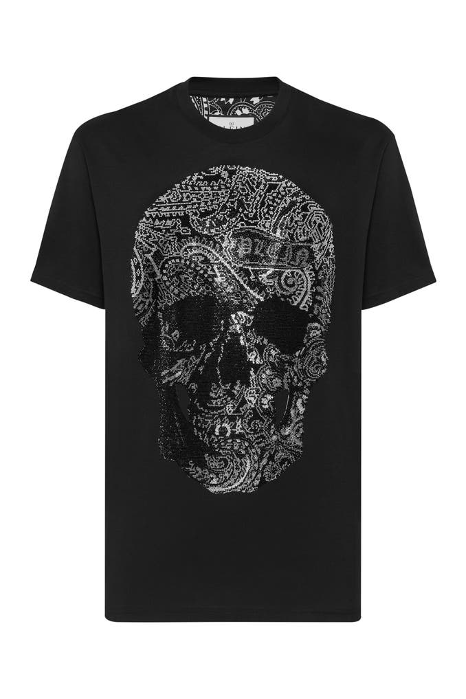 Dieses kultige T-Shirt mit Rundhalsausschnitt definiert lässigen Luxus mit einem auffälligen Paisley-Totenkopf-Muster neu - perfekt für alle, die ein Statement mit raffinierter Note setzen wollen.