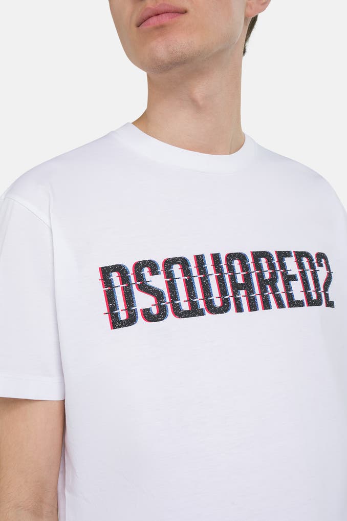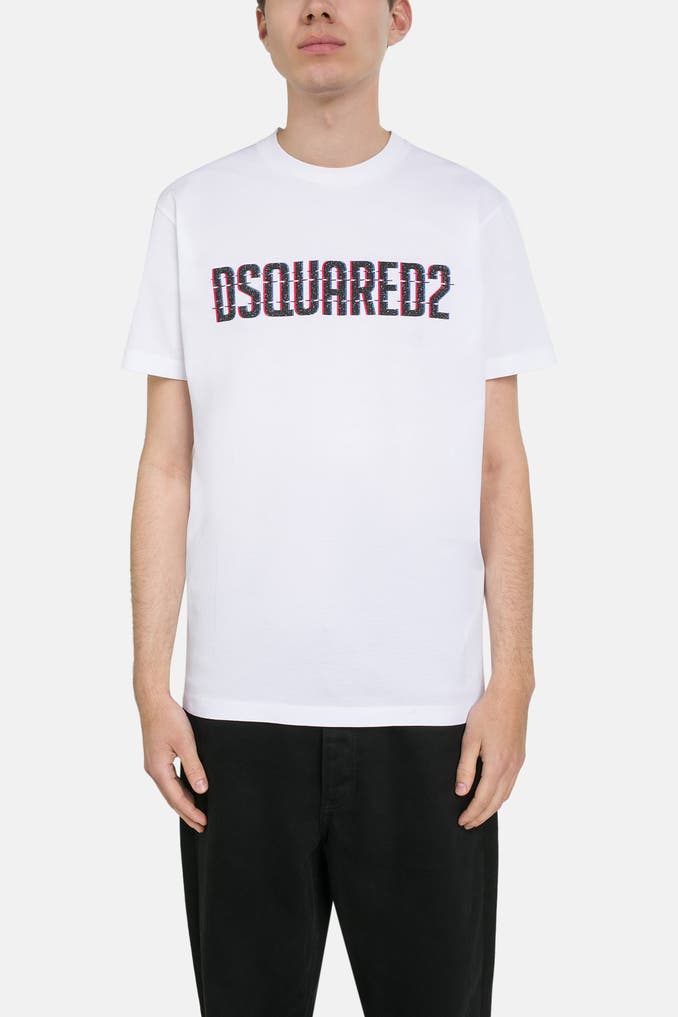 Sie lieben einen lässigen Look? Wie wäre es mit dem weißen DSQUARED2 T-Shirt mit Logo-Muster? Der Rundhalsausschnitt und der gerade Schnitt sorgen für optimalen Tragekomfort und einen stylischen Auftritt in Ihrer Freizeit.