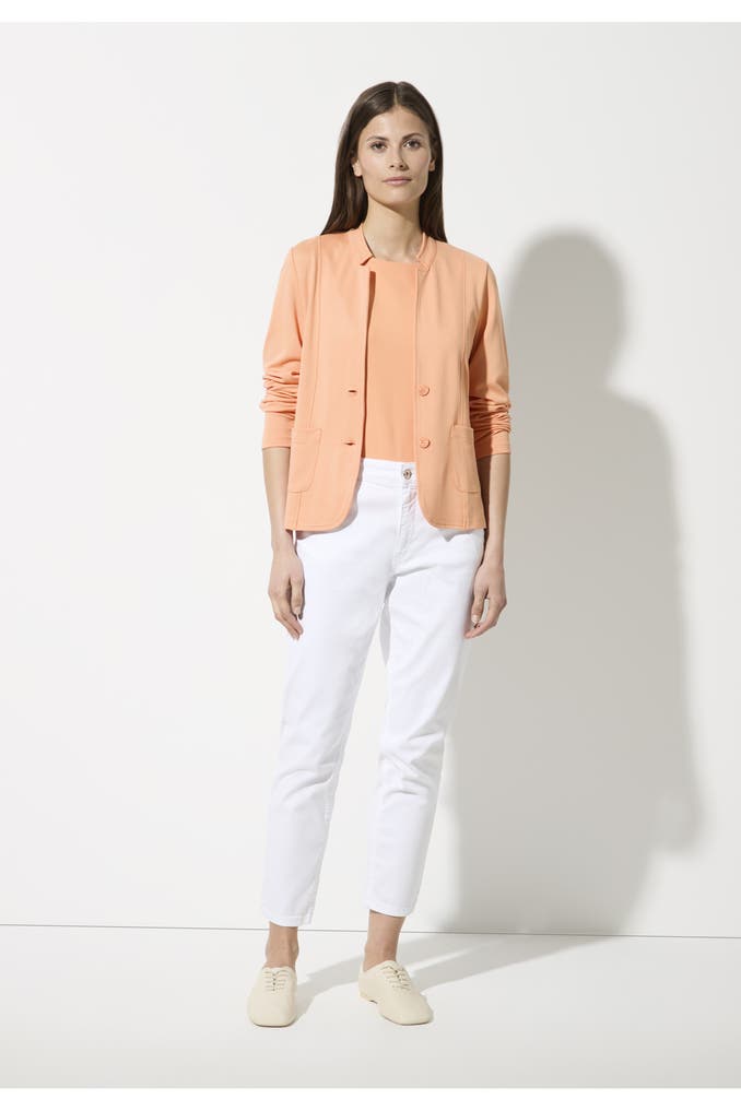 Das stretchige Baumwoll-Top von MORE & MORE kann solo mit sommerlicher Shorts und Zehensandalen getragen werden, sieht aber auch unter einem Cardigan oder Blazer sehr gut aus.