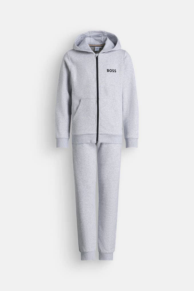 Verwöhnen Sie Ihren kleinen Sportler mit dem Trainingsanzug von BOSS. Der Anzug besticht durch seinen geraden Schnitt und das hochwertige Material. Mit praktischen Eingrifftaschen und einem Uni-Design ist dieser Anzug perfekt für Freizeitaktivitäten geeignet.