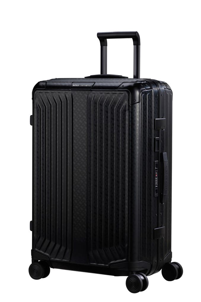 Dieser Trolley der BOSS x SAMSONITE Kollektion bietet genügend Stauraum und luxuriösen Komfort auf all Ihren Abenteuern!