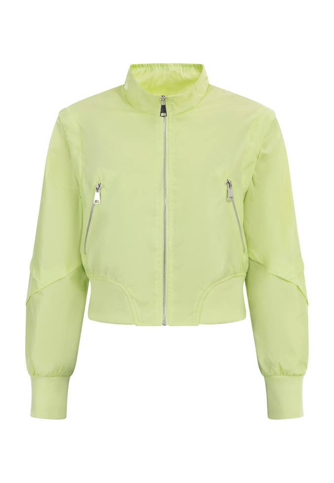 Mit der dünnen Blousonjacke von myMo verleihst Du Deinen Outfits einen farbenfrohen Twist. Das modische cropped Design wurde aus einem leichten, schimmernden Material gefertigt und zeigt durch die sichtbaren Nähte einen raffinierten Look. Abgerundet wird die Übergangsjacke durch die Reißverschlusstaschen und breiten gerippten Bündchen.
