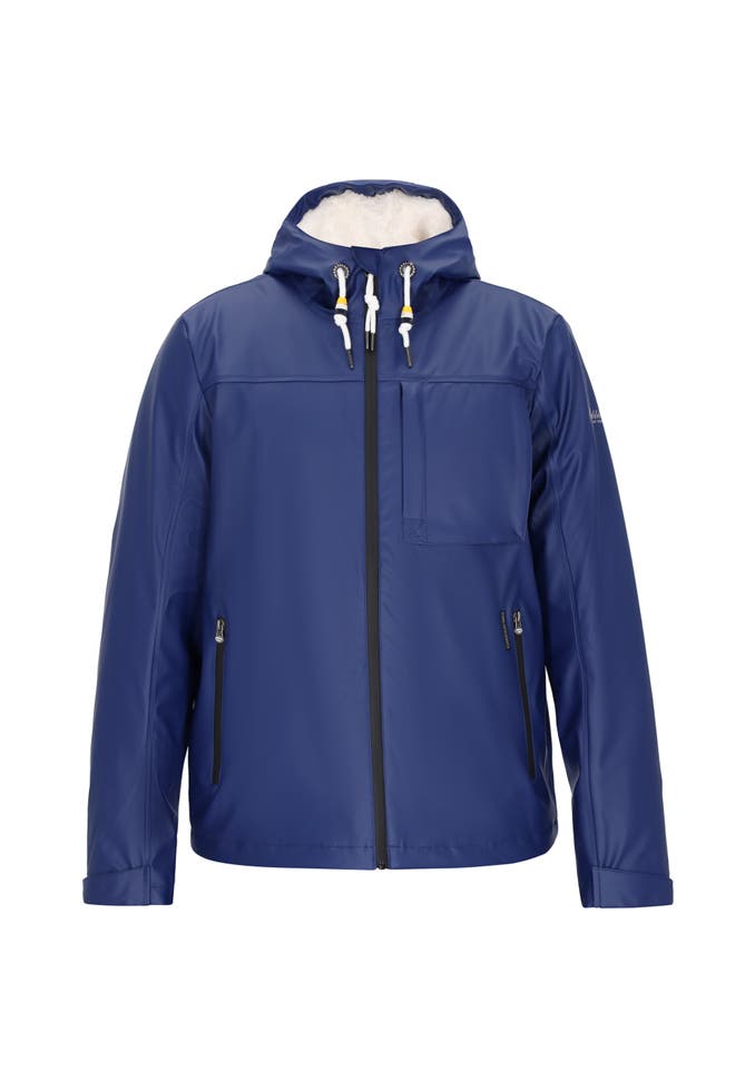 This jacket features a regular fit. It features a drawstring hood and a full-zip closure. Crafted from durable, smooth-textured polyester with a 3000mm waterproof coating and windproof fabric for protection in harsh conditions, it features fully taped seams for maximum waterproofness. It also features practical zippered pockets. Functional, versatile, and comfortable. This Outerwear Collection model is perfect for those who value everyday protection and comfort.