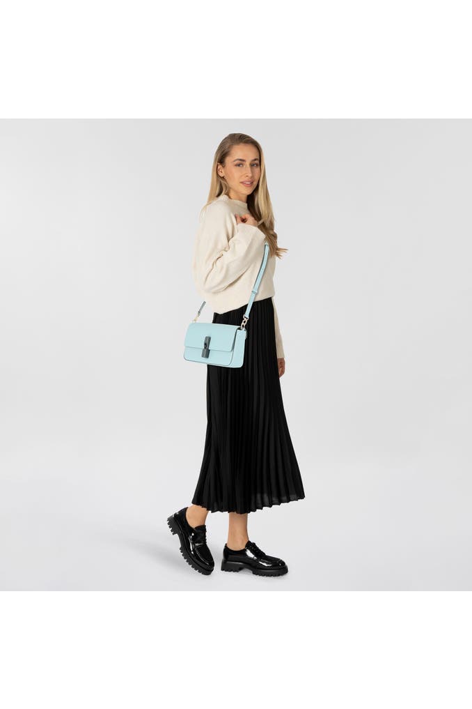 Die Furla Iride Umhängetasche ist ein stilvolles Accessoire mit einem Twist. In harmonischem Leder gefertigt, strahlt sie eine ästhetische Perfektion aus, die beeindruckt. Der sicher zu handhabende Magnetverschluss betont die praktische Seite dieses alltäglichen Begleiters, während im Inneren ein adäquates Reißverschlussfach Ordnung garantiert. Einen extra Hauch von Individualität verleiht der abnehmbare und verstellbare Umhängeriemen, der flexible Tragemöglichkeiten bietet. Der lange Hauptgurt schmeichelt der Figur und sorgt für einen komfortablen Sitz während des Transports. Lassen Sie sich dieses Duo aus raffinierter Ästhetik und Funktionalität nicht entgehen!