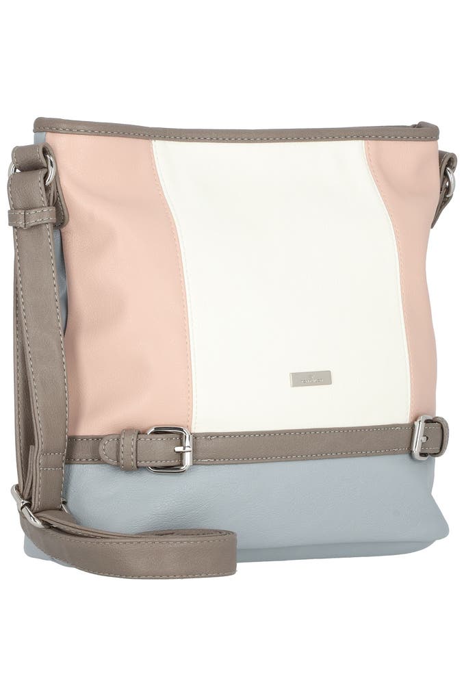 Stylische Umhängetasche von Tom Tailor mit schönen Deko-Schnallen vorne. Die Tasche verfügt über ein geräumiges Hauptfach mit Reißverschlussöffnung, ein Reißverschlussfach, ein Handy- und ein Steckfach im Innern, sowie ein weiteres Reißverschlussfach an der Rückseite. Der Umhängeriemen lässt sich stufenlos verstellen. Modische Begleiter für den Alltag.