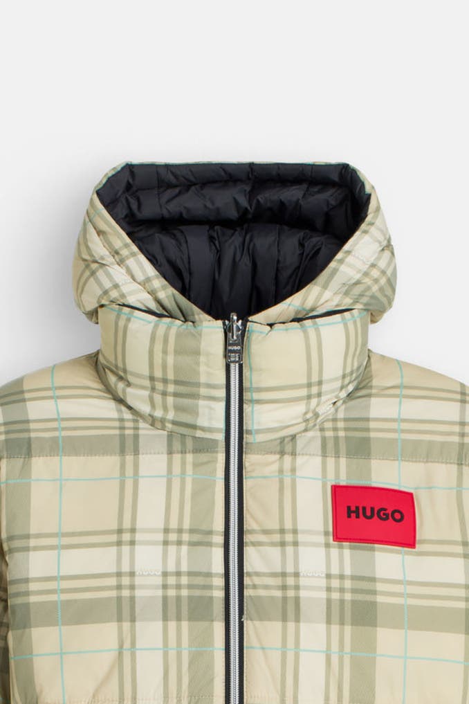 • Wendejacke: eine Seite in Schwarz, eine Seite in Lindgrün kariert