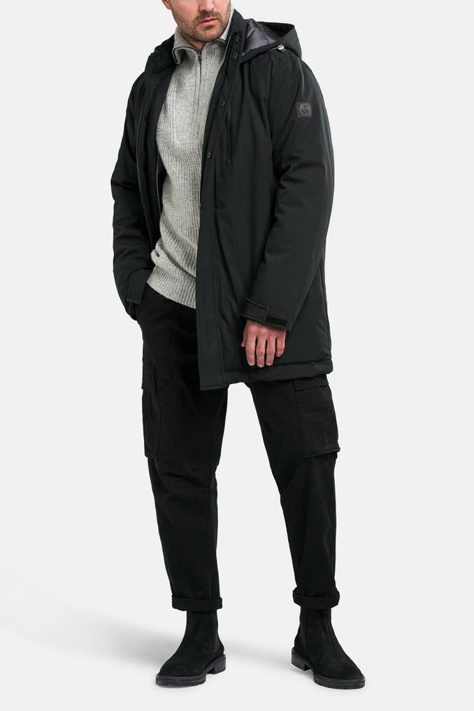 Schützen Sie sich diesen Winter stilvoll mit dem NORTH SAILS Winterparka 'Varberg' in Schwarz. Der gefütterte und wasserabweisende Parka mit Kapuze ist nicht nur atmungsaktiv, sondern auch winddicht – perfekt für kalte Tage.