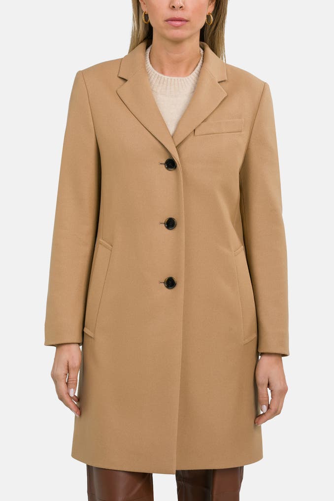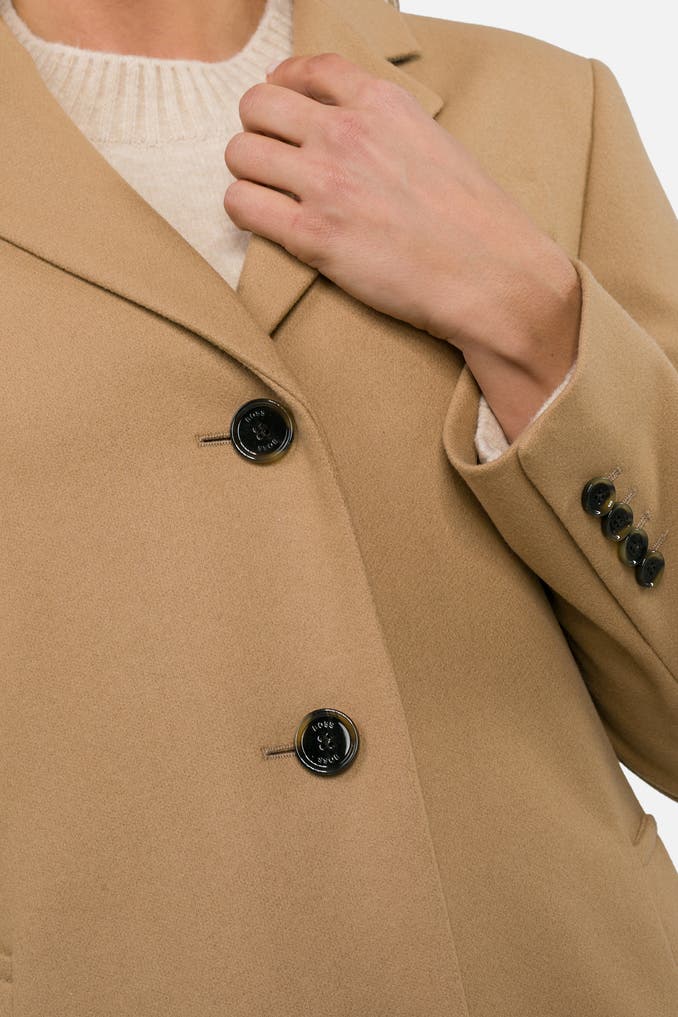 Verwöhnen Sie sich mit Eleganz und Stil: Der Wollmix-Mantel 'Celiya' in Hellbraun von BOSS ist ein zeitloses und hochwertiges Kleidungsstück, das in keiner Damen-Garderobe fehlen sollte.