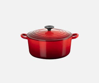 WhatsApp ShoppingLe Creuset -44 %* auf runder Bräter aus Gusseisen in 26cm, Kirschrot