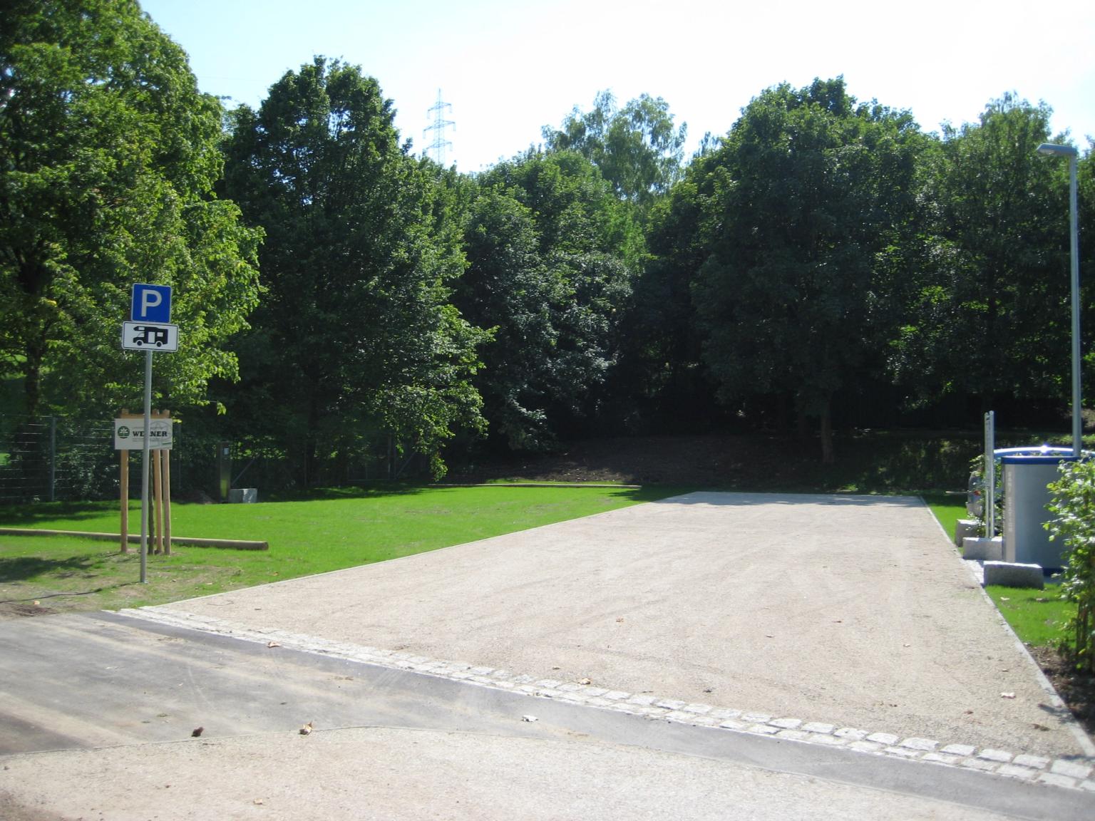 Es stehen 12 Wohnmobilstellplätze mit Ver- und Entsorgungsstation für Frisch- und Abwasser, Abfallbehältern und Stromanschluss zur Verfügung. Ein gastronomisches Angebot befindet sich in unmittelbarer Nähe, und der Platz ist gut an den öffentlichen Nahverkehr angebunden.