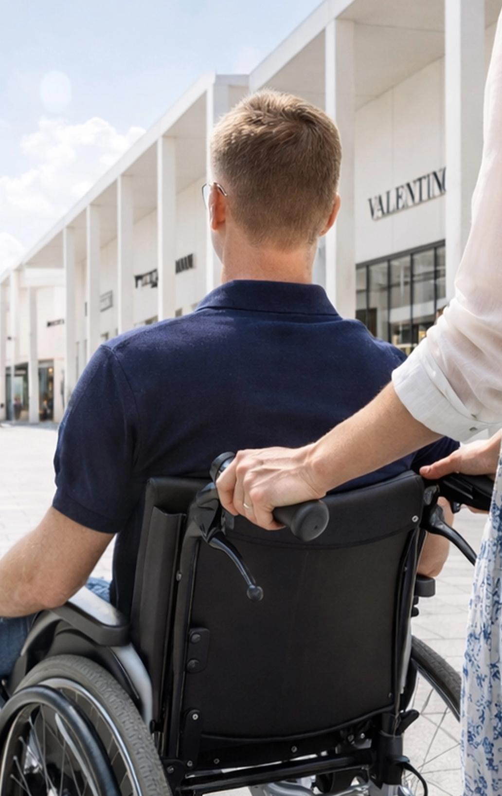 Wir bemühen uns, das Außengelände sowie die Outlet Stores für alle Besucher leicht zugänglich zu gestalten. So befinden sich Aufzüge in den mehrstöckigen Gebäuden und die Höhenunterschiede auf dem Gelände sind größtenteils durch Rampen überbrückt. Rollstuhl-WCs stehen in allen sanitären Räumlichkeiten zur Verfügung.