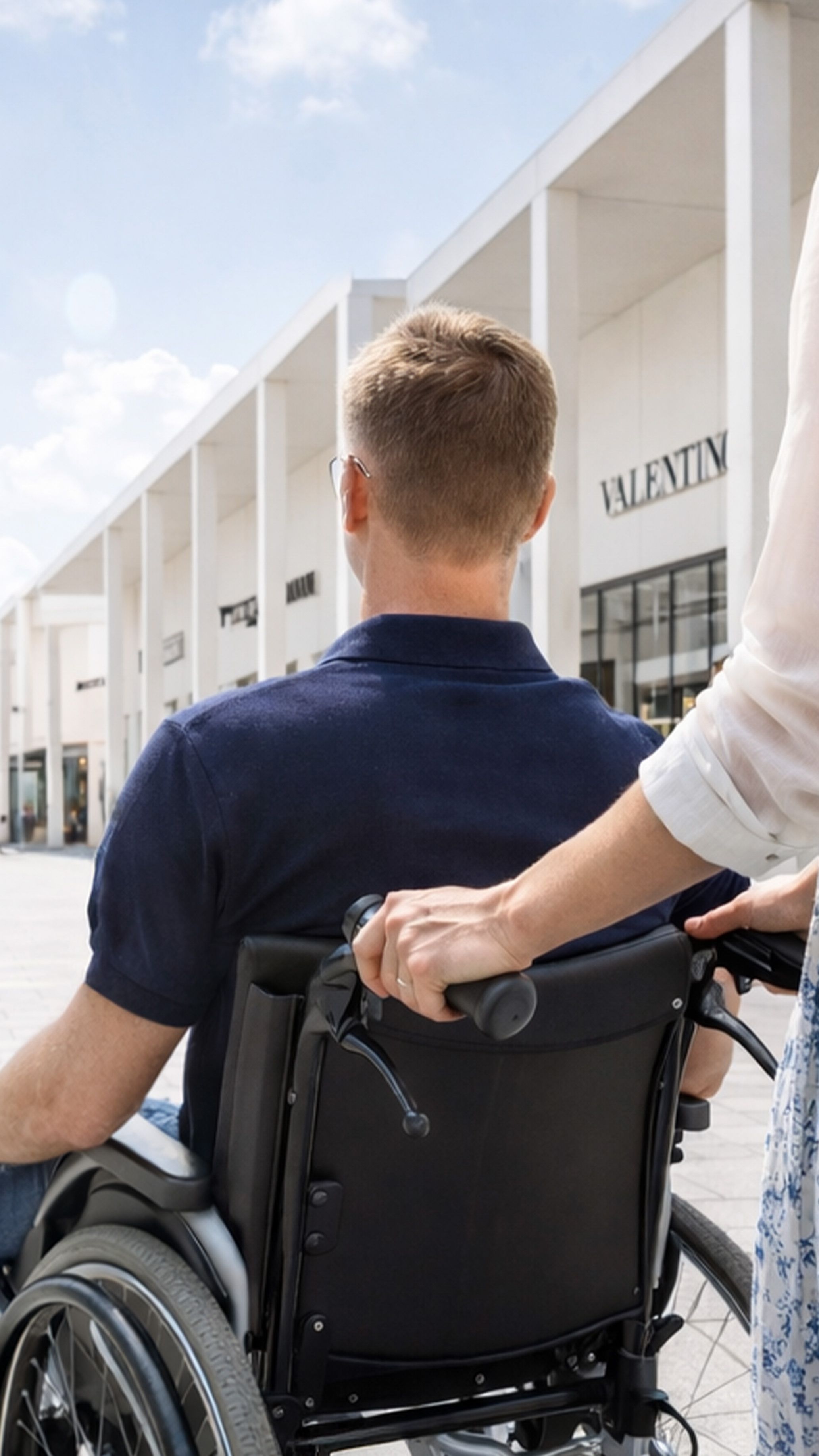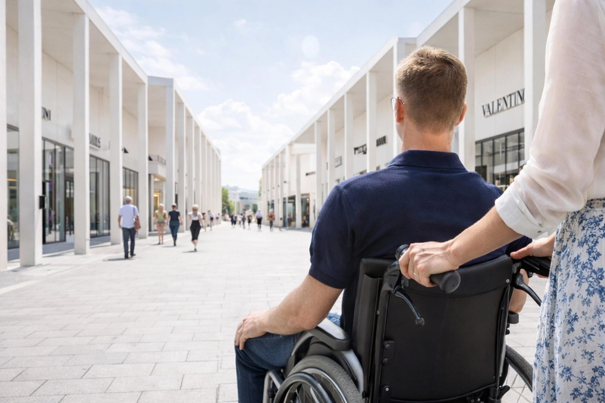 Wir bemühen uns, das Außengelände sowie die Outlet Stores für alle Besucher leicht zugänglich zu gestalten. So befinden sich Aufzüge in den mehrstöckigen Gebäuden und die Höhenunterschiede auf dem Gelände sind größtenteils durch Rampen überbrückt. Rollstuhl-WCs stehen in allen sanitären Räumlichkeiten zur Verfügung.
