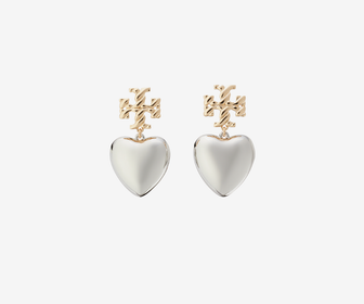 HighlightTory Burch Women's heart earrings with logo studs, gold