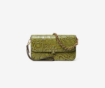 HighlightTory Burch Women's shoulder bag with gold chain and wristlet, green