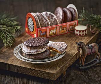Lebkuchen Schmidt earned its legendary reputation primarily due to the extraordinary quality and unmistakable taste of its specialties. Til today, the treats are made with passion, the finest ingredients and the same recipes handed down through generations For example, only fair trade cocoa beans are used in all of the creations. Whether it’s premium Elisen gingerbread, moist cinnamon stars, or year-round favorites like vanilla crescents and handcrafted pralines – Schmidt offers the perfect treat for every taste. Particular favourites include the decorative tins and cans that are perfect as a gift. For special occasions or a token of appreciation for family and friends, the Christmas packages offer a diverse selection of various goods.