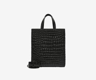 Black WeeksLIEBESKIND BERLIN Women's bag black Paper Bag M in crocodile look with shoulder strap